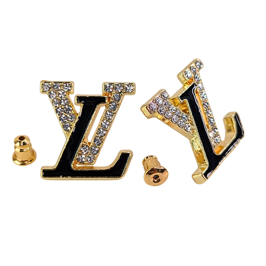 Jolietta Zwarte Met Stenen Oorbellen - Gouden Afwerking